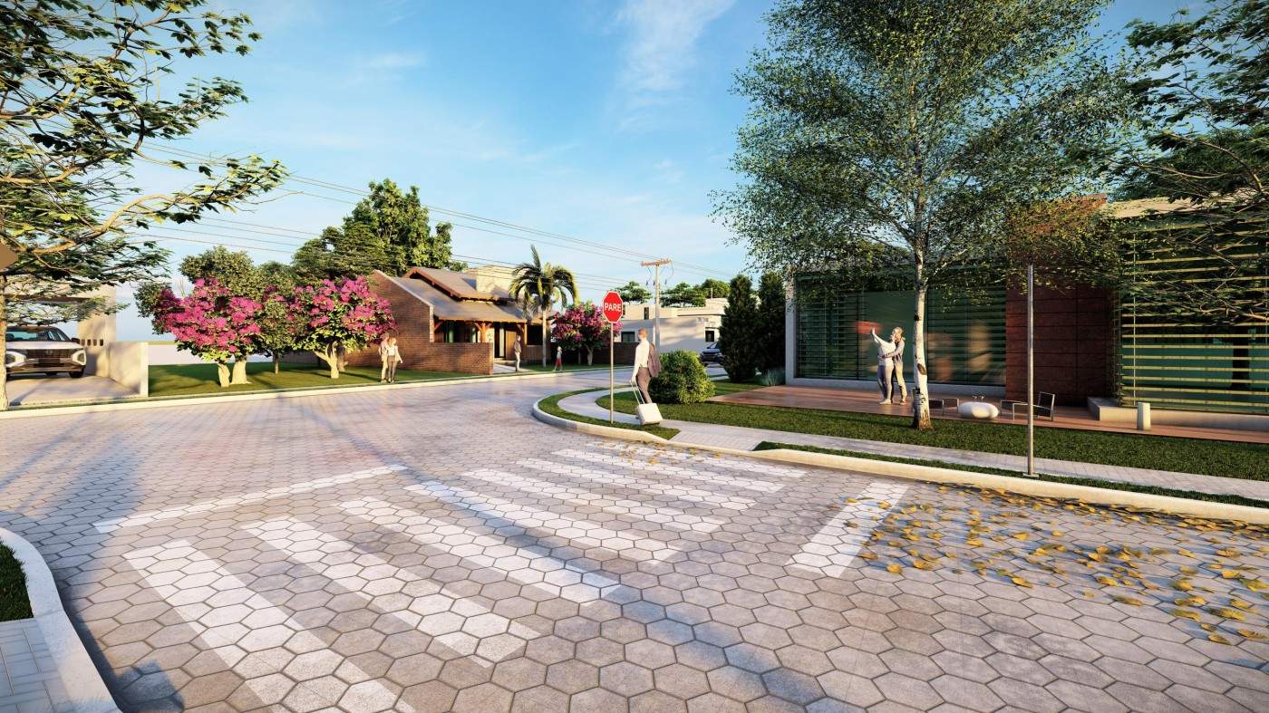 Pórtico de entrada imponente: segurança e exclusividade para o loteamento.