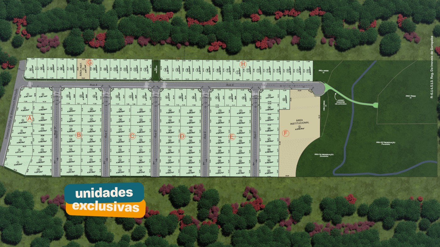 Ampla variedade de tamanhos: de 300m² a 377m², escolha o espaço ideal para construir seus sonhos.